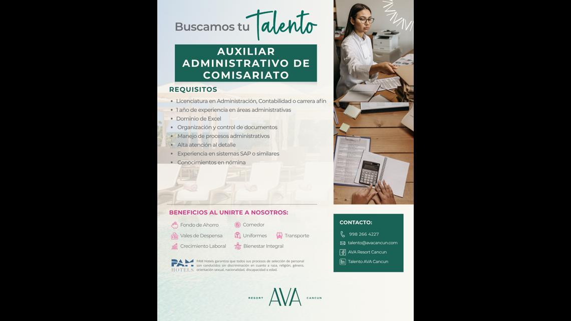 Auxiliar Administrativo - Comisariato PAM Hotels Cancun